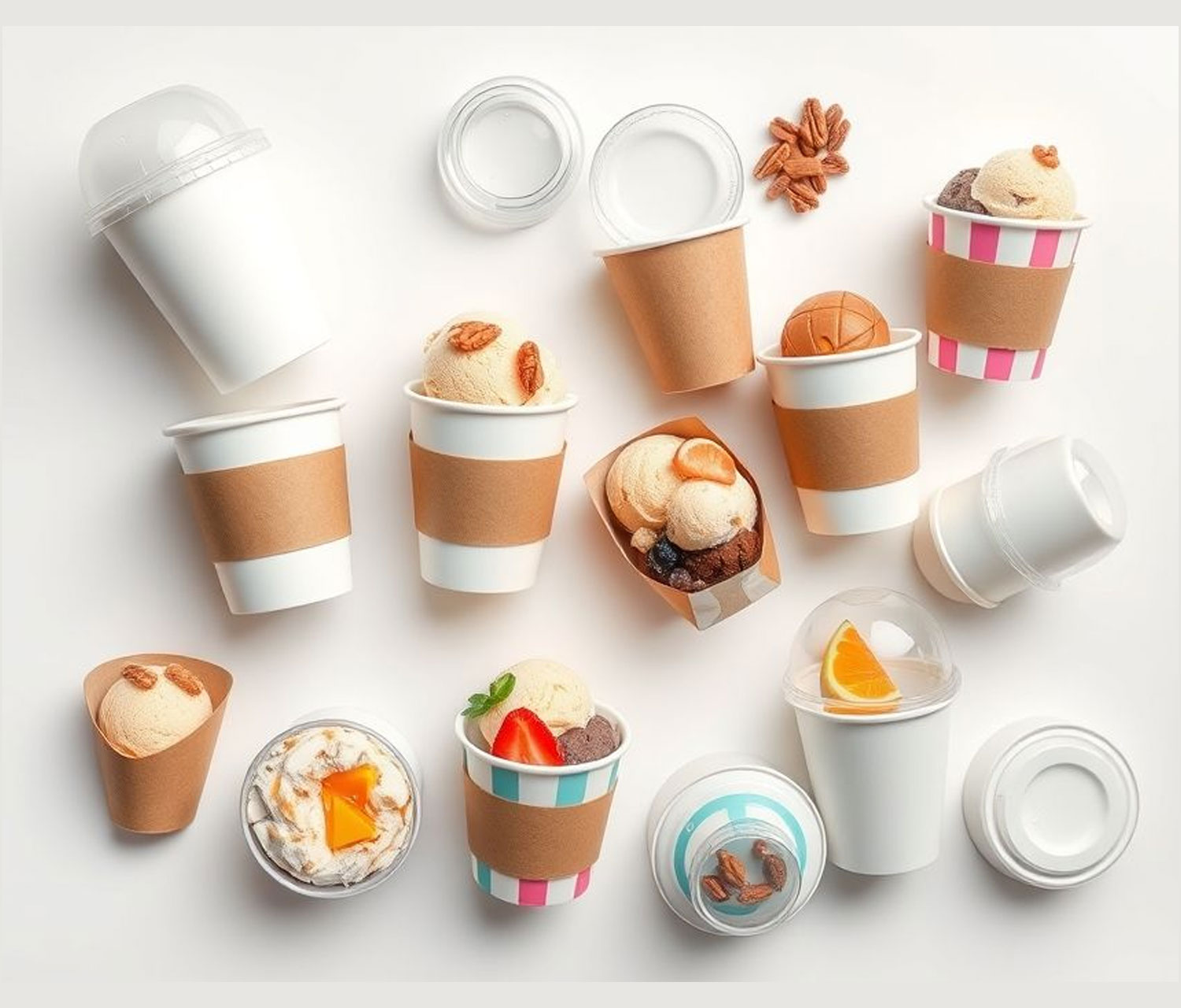 • Description: Sturdy, well-proportioned cups designed specifically for frozen desserts. Perfect for sundaes, gelato, frozen yogurt, and parfaits.
